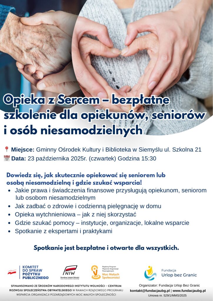 Opieka z Sercem – bezpłatne szkolenie dla opiekunów, seniorów i osób nie samodzielnych